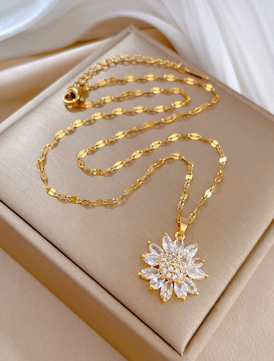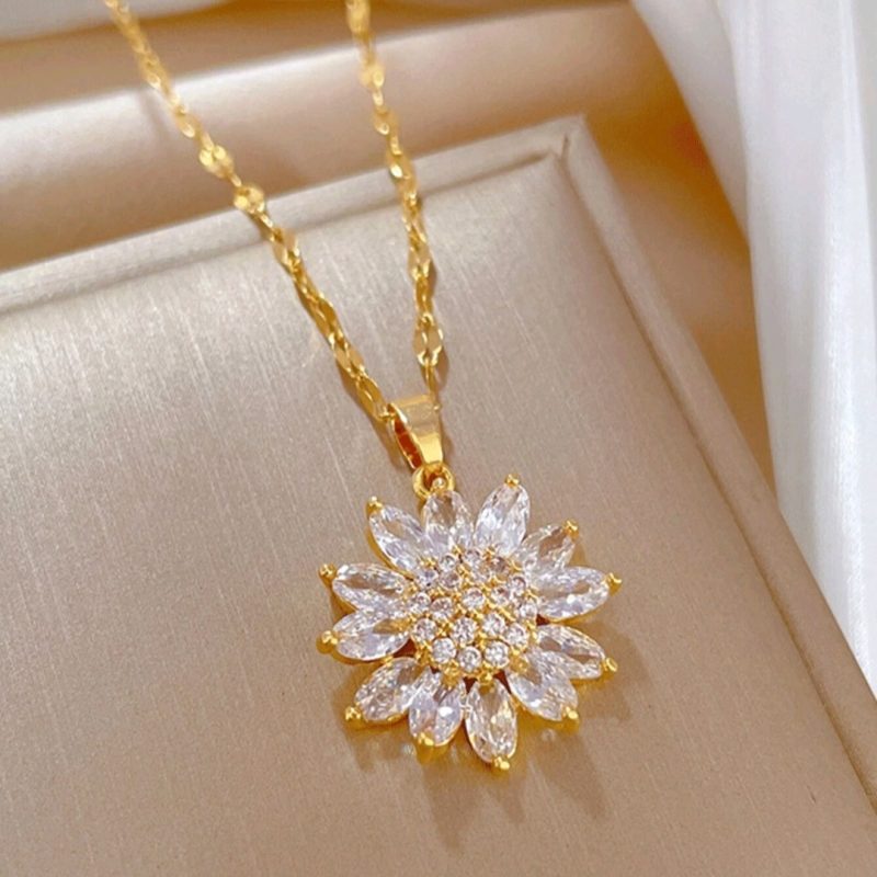 قلادة علقة مطلية بالذهب من الفولاذ المقاوم للصدأ بتصميم أنيق للزهرة عباد الشمس، غير مسبب […]