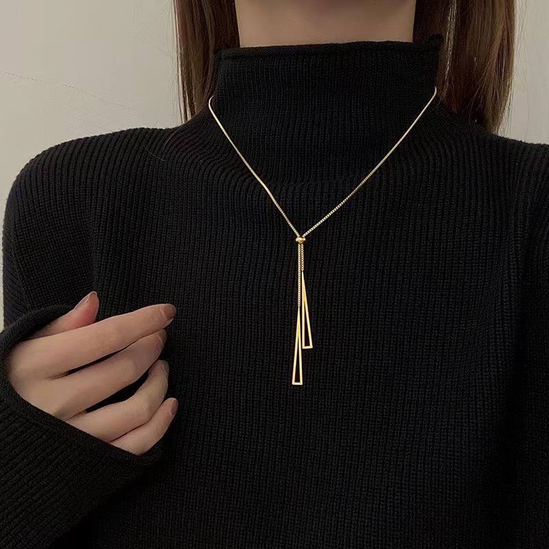 قلادة بوهيمية من الستانلس ستيل المقاوم للصدأ على شكل مثلث Y قلادة ذهبية مجوفة متدلية على شكل سلسلة مثلث طويلة قابلة للتعديل على شكل حرف Y مجوهرات للنساء والفتيات هدايا