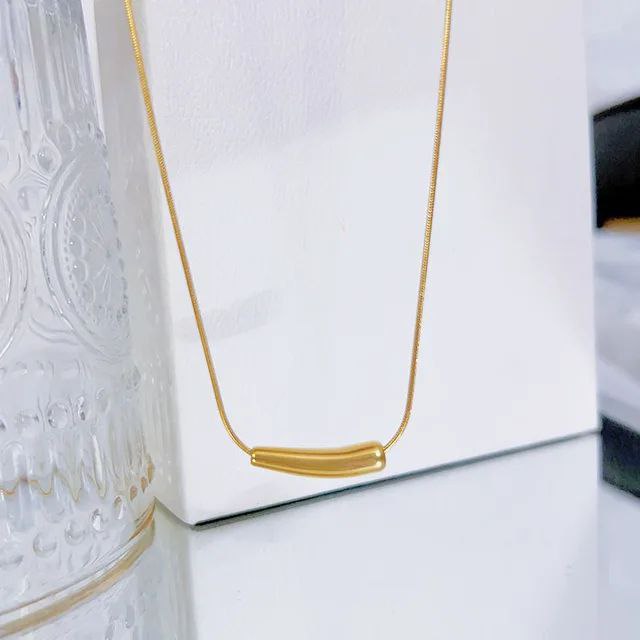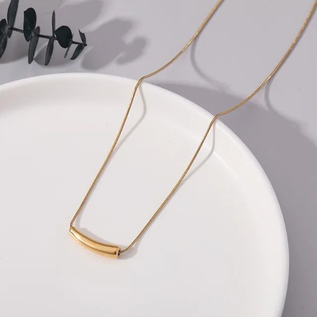 قلادة على شكل أنبوب دائري من الفولاذ المقاوم للصدأ باللون الذهبي البسيط للنساء والفتيات، تصميم باذنجان مبتكر، سلسلة متعددة الاستخدامات رائعة