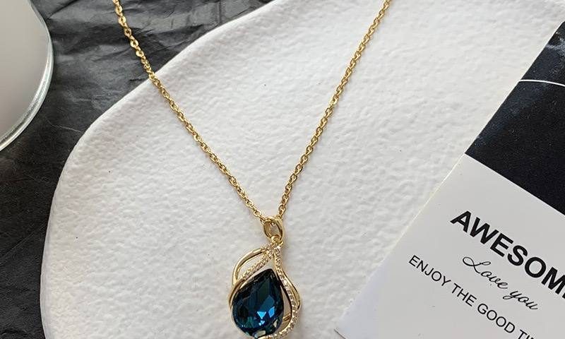 سلسلة لامعة بتصميم نسائي جميلة مرصعة بالزركونيا المكعبة على الموضة الكورية للبيع بالجملة – أزرق حبري