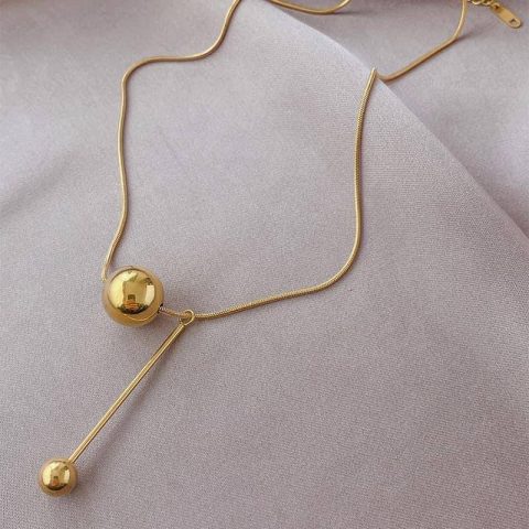 قلادة كورية باللون الذهبي بتصميم عصري للغاية بكرة معدنية، سلسلةستانلس ستيل مقاومة للصدأ قصيرة للعنق بتصميم غربي