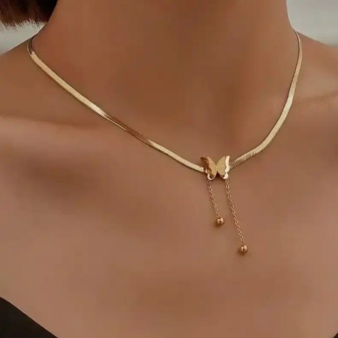 سلسلة قلادة فراشة فاخرة مصنوعة من الستانلس ستيل مطلية بالذهب عيار 18
