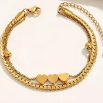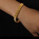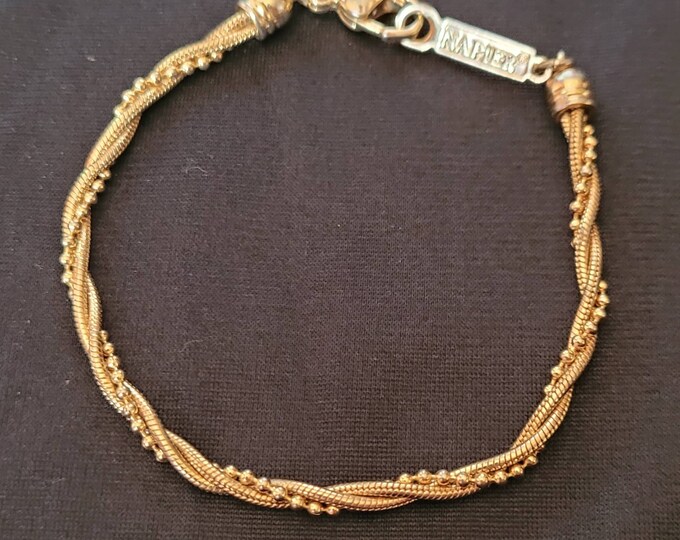 سوار موقّع من ثلاث خيوط ملتوية باللون الذهبي، سوار منسوج بسلسلة كرات من الخرز من الستانلس ستيل المقاوم للصدأ