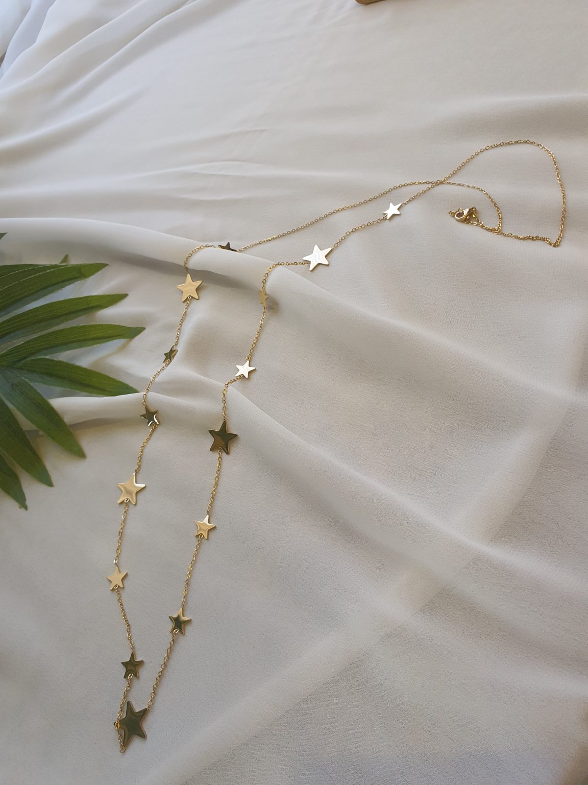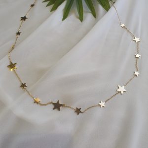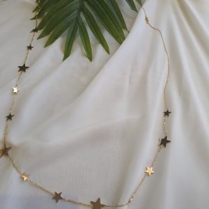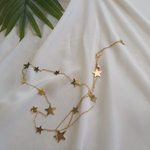 سلسلة ذهبية طويلة عبارة عن نجوم متصلة ونجوم وهلال يمكن لفها اكثر من مرة مصنوعة من الستانلس ستيل المقاوم للصدأ