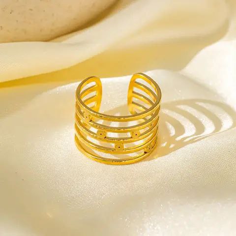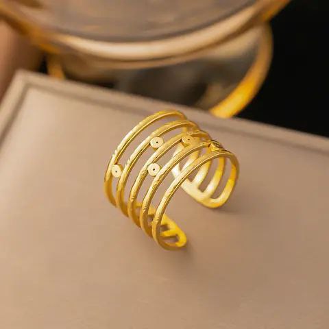 خاتم مفتوح من الذهب متعدد الطبقات من الستانلس ستيل المقاوم للصدأ يناسب جميع المقاسات