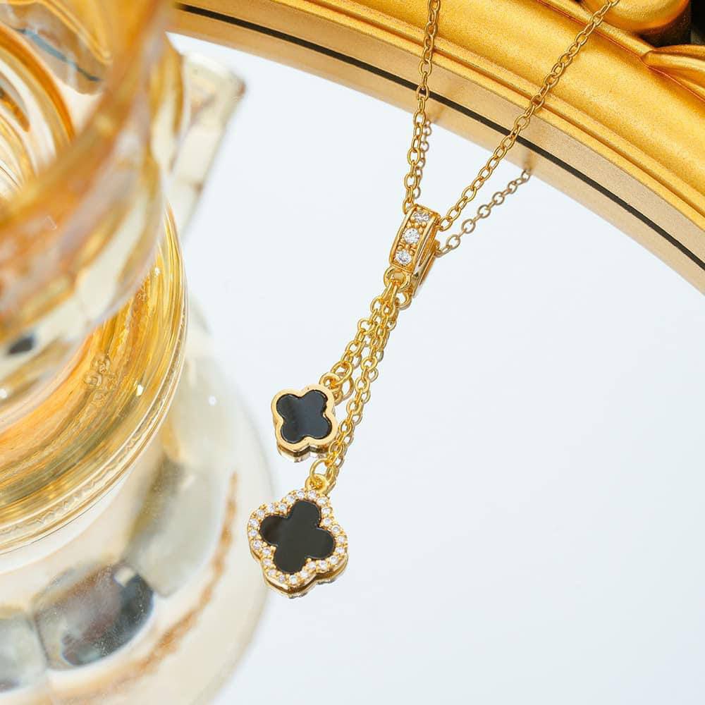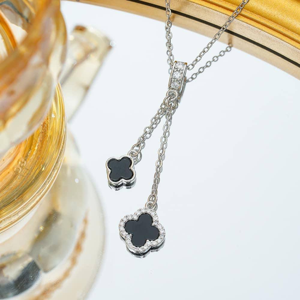قلادة نسائية من الفولاذ المقاوم للصدأ خفيفة الوزن فاخرة على شكل زهرة البرسيم ذات الأربع أوراق متعددة الاستخدامات سلسلة رائعة