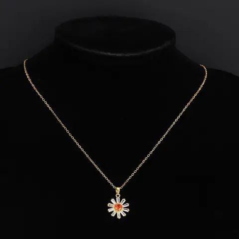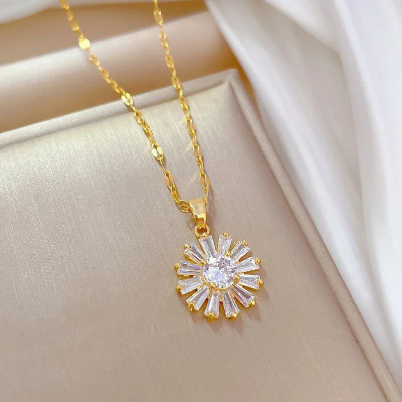 قلادة من الفولاذ المقاوم للصدأ على شكل زهور الأقحوان الصغيرة من الزركون للنساء والفتيات مجموعة مجوهرات عصرية جديدة هدية للحفلات