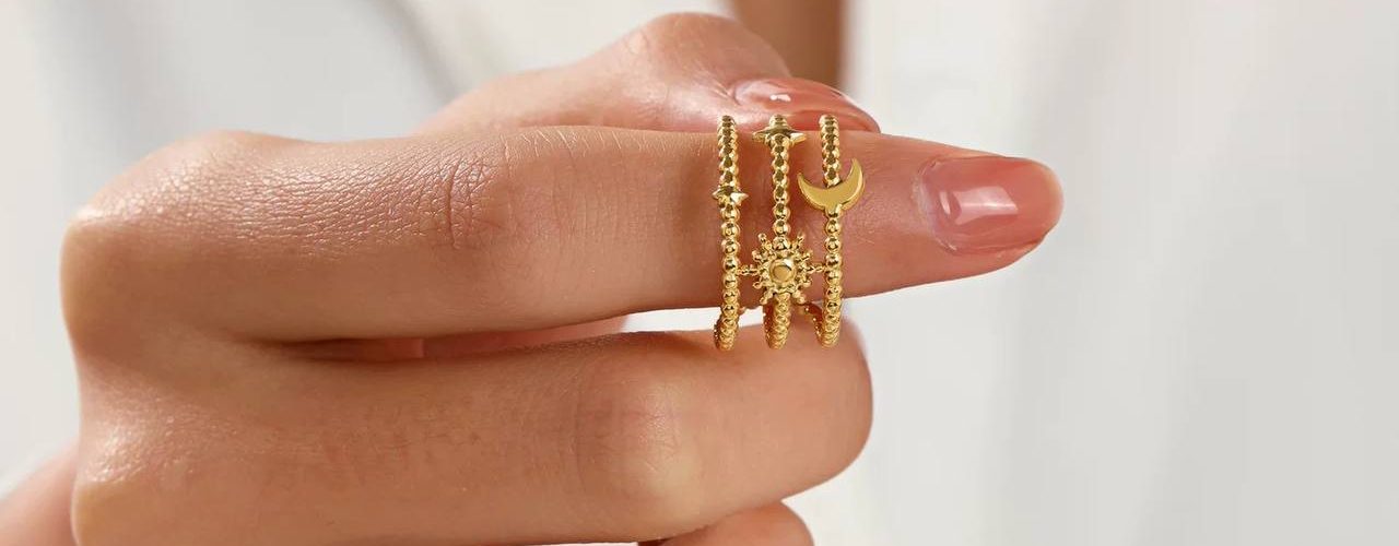 خاتم رقيق على هيئة نجمة وهلال مصنوع من الستانلس ستيل المقاوم للصدأ يصلح للاستخدام اليومي او في المناسبات ويصلح كهدية جميلة للأصدقاء