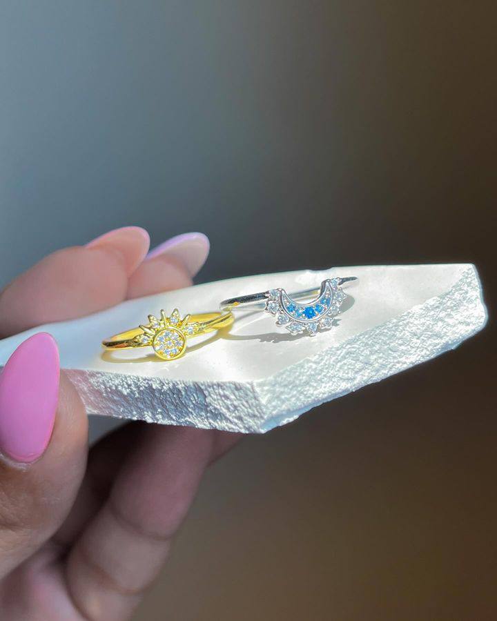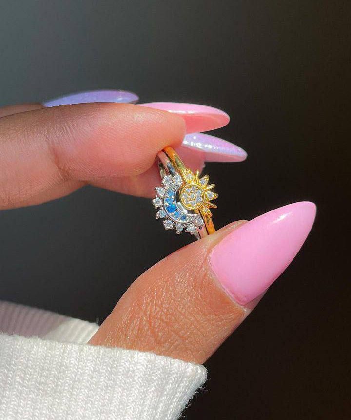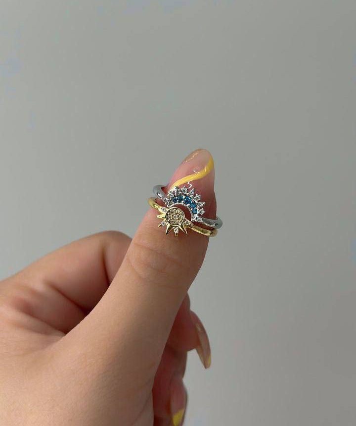 مجموعة خواتم متطابقة للزوجين الشمس والقمر من الستانلس ستيل المقاوم للصدأ مفتوح يناسب جميع المقاسات