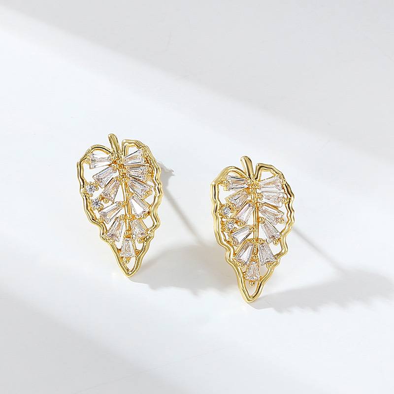 أقراط نسائيةعلى شكل ورقة شجر مطلية بالذهب عيار 18 قيراطًا ومزينة بكريستالات سواروفسكي