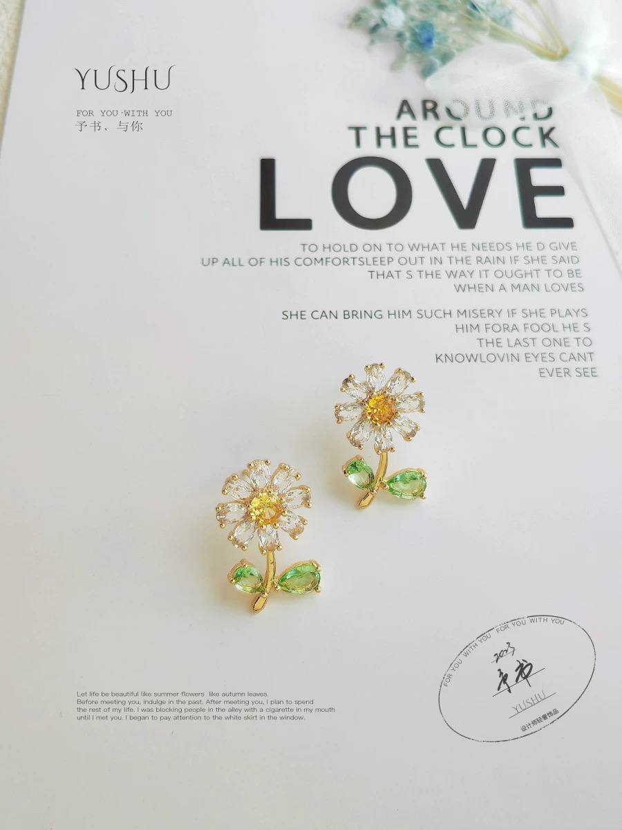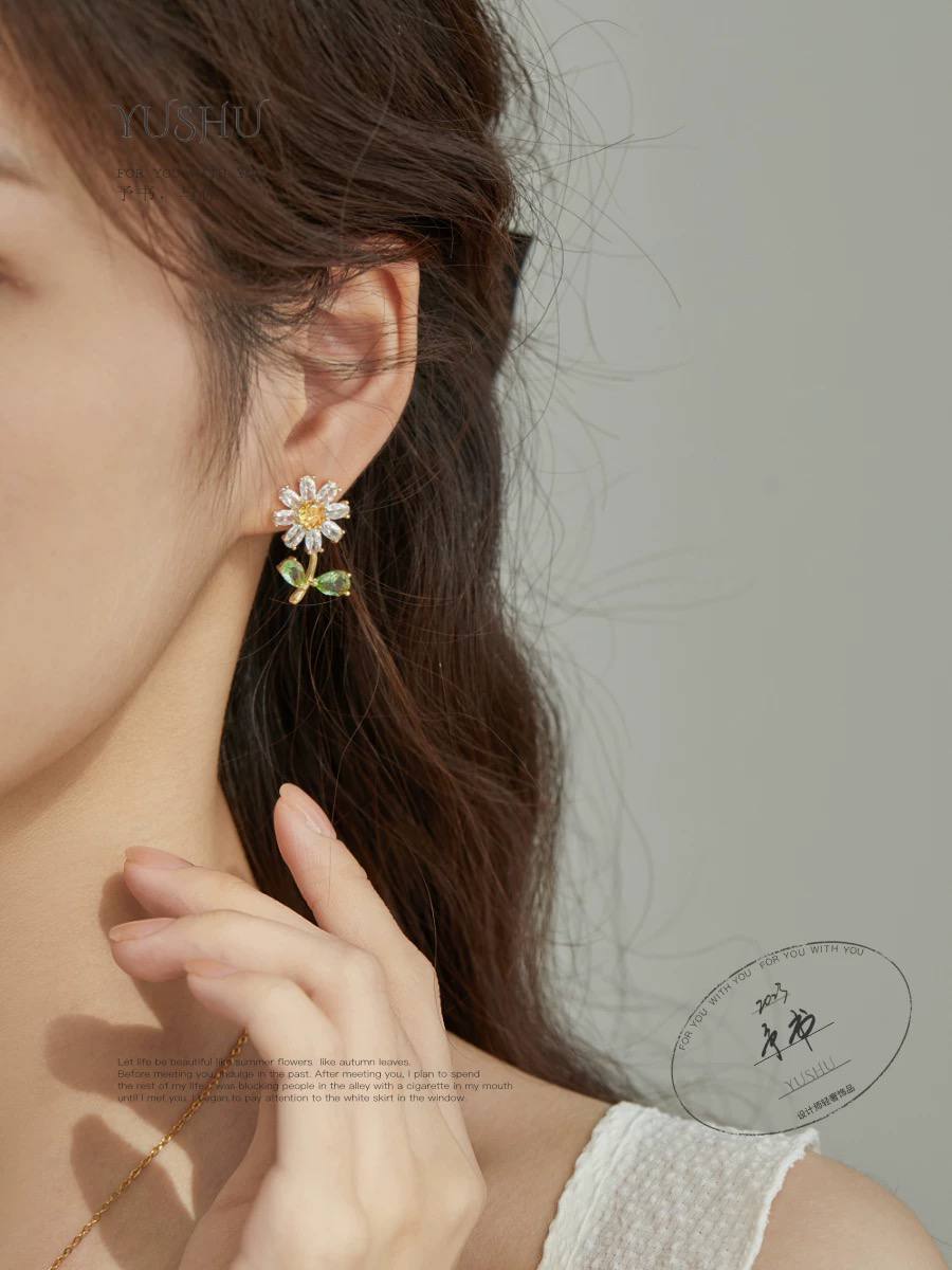 أقراط نسائية على شكل وردة مطلية بالذهب عيار 18 قيراطًا ومزينة بكريستالات سواروفسكي
