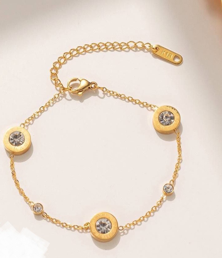 مجموعة ألماس أرقام رومانية مستديرة إكسسوارات العلامة التجارية سوار ستانلس ستيل المقاوم للصدأ مطلي بالذهب سوار بدلة
