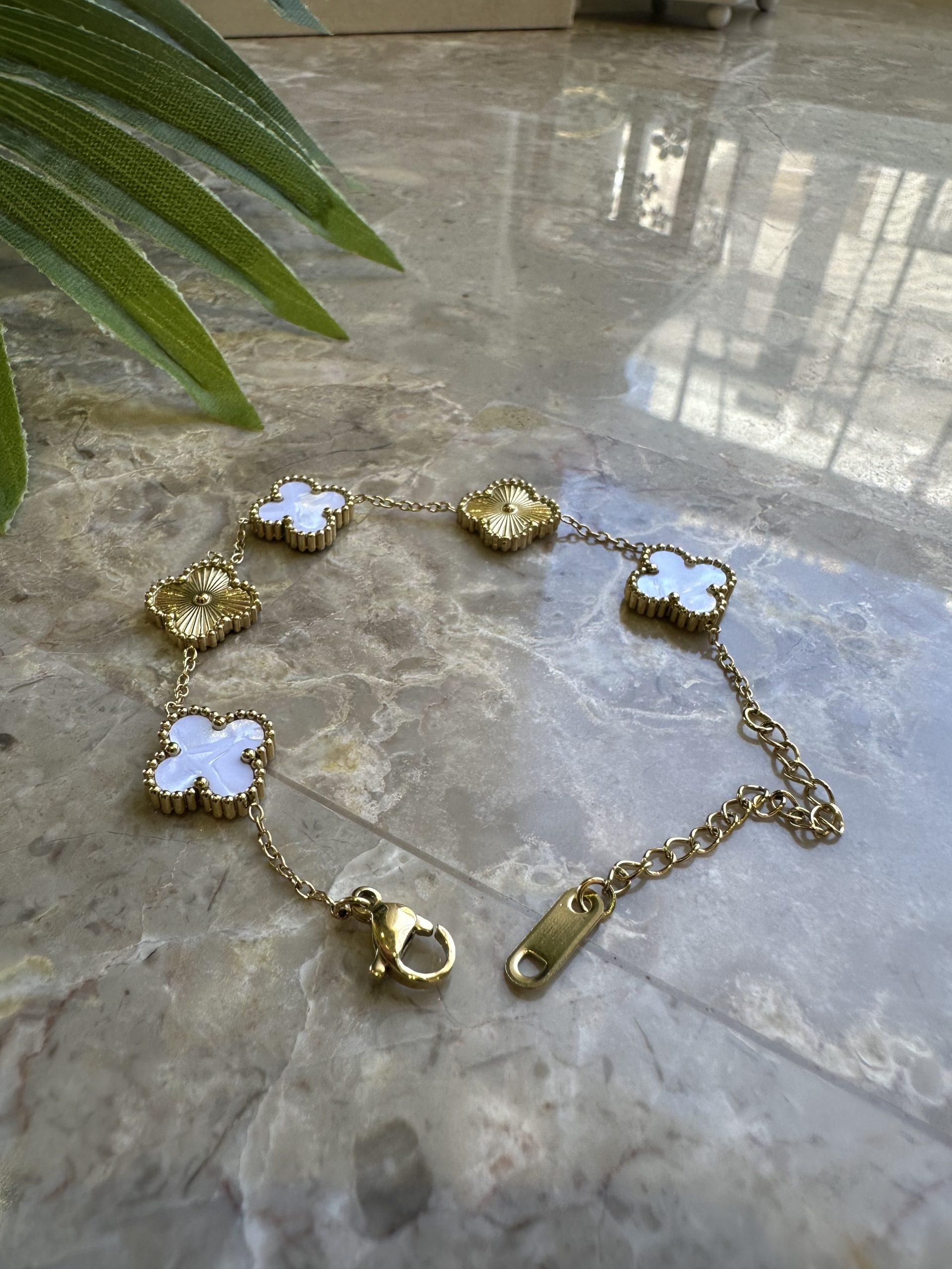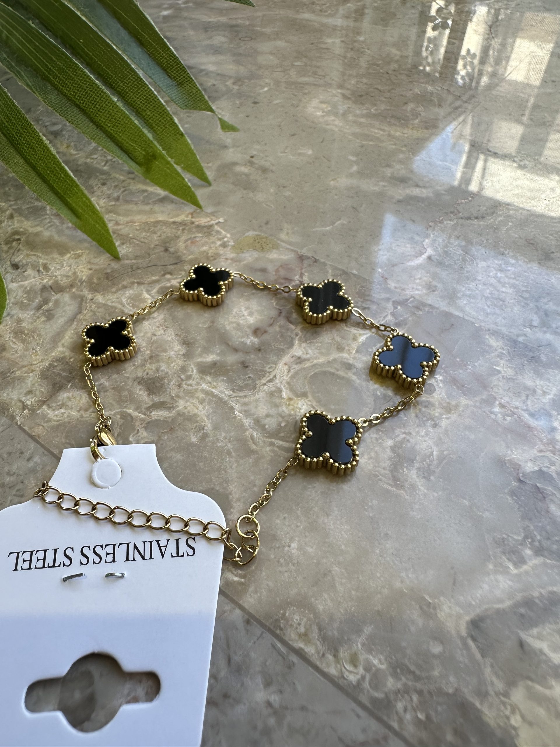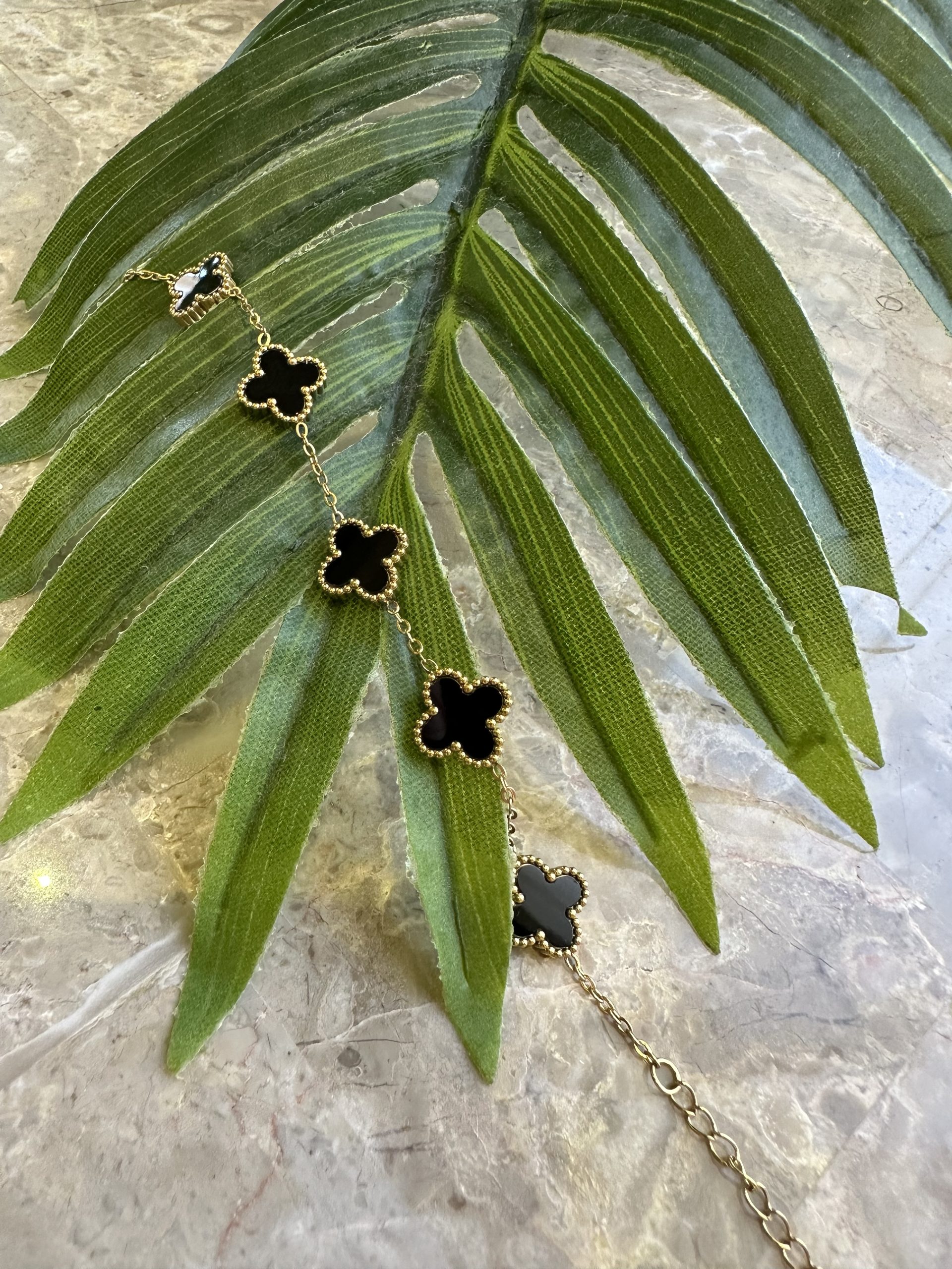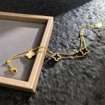 سوار فان كليف ستانلس ستيل مطلي بالذهب الأصفر عيار 18 قيراطًا ذو وجهين أبيض وأسود