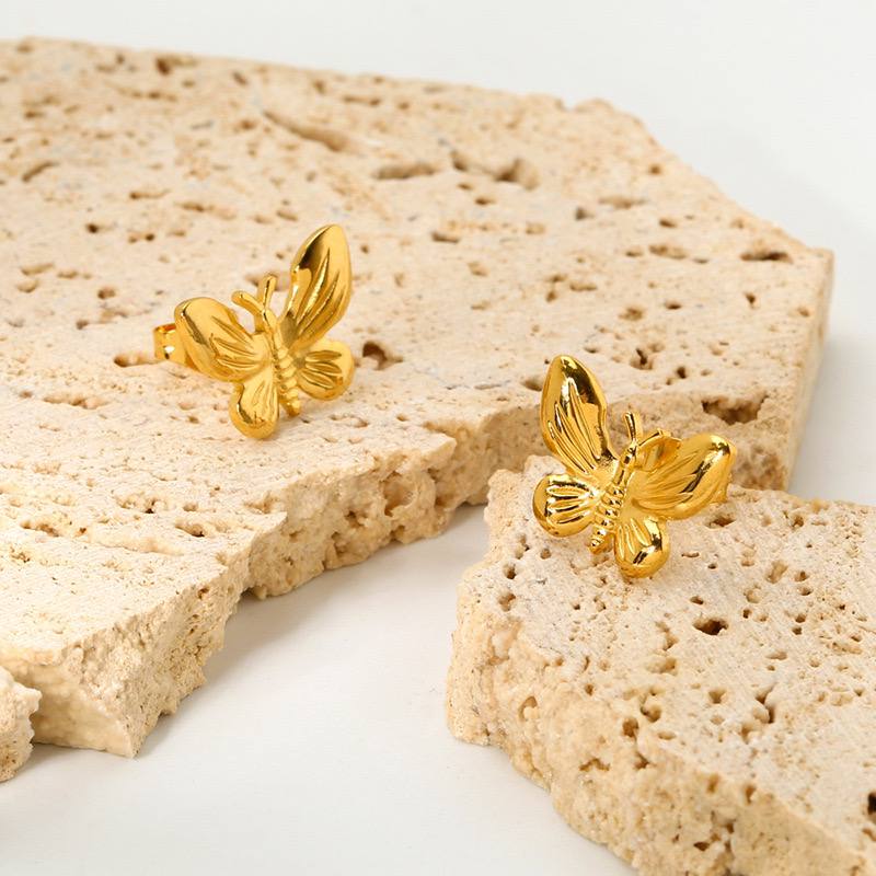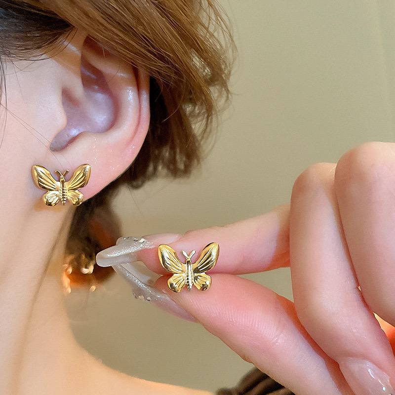 أقراط فراشة ذهبية صغيرة من الستانلس ستيل المقاوم للصدأ