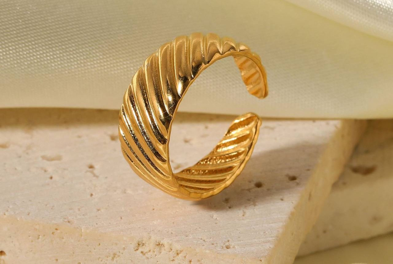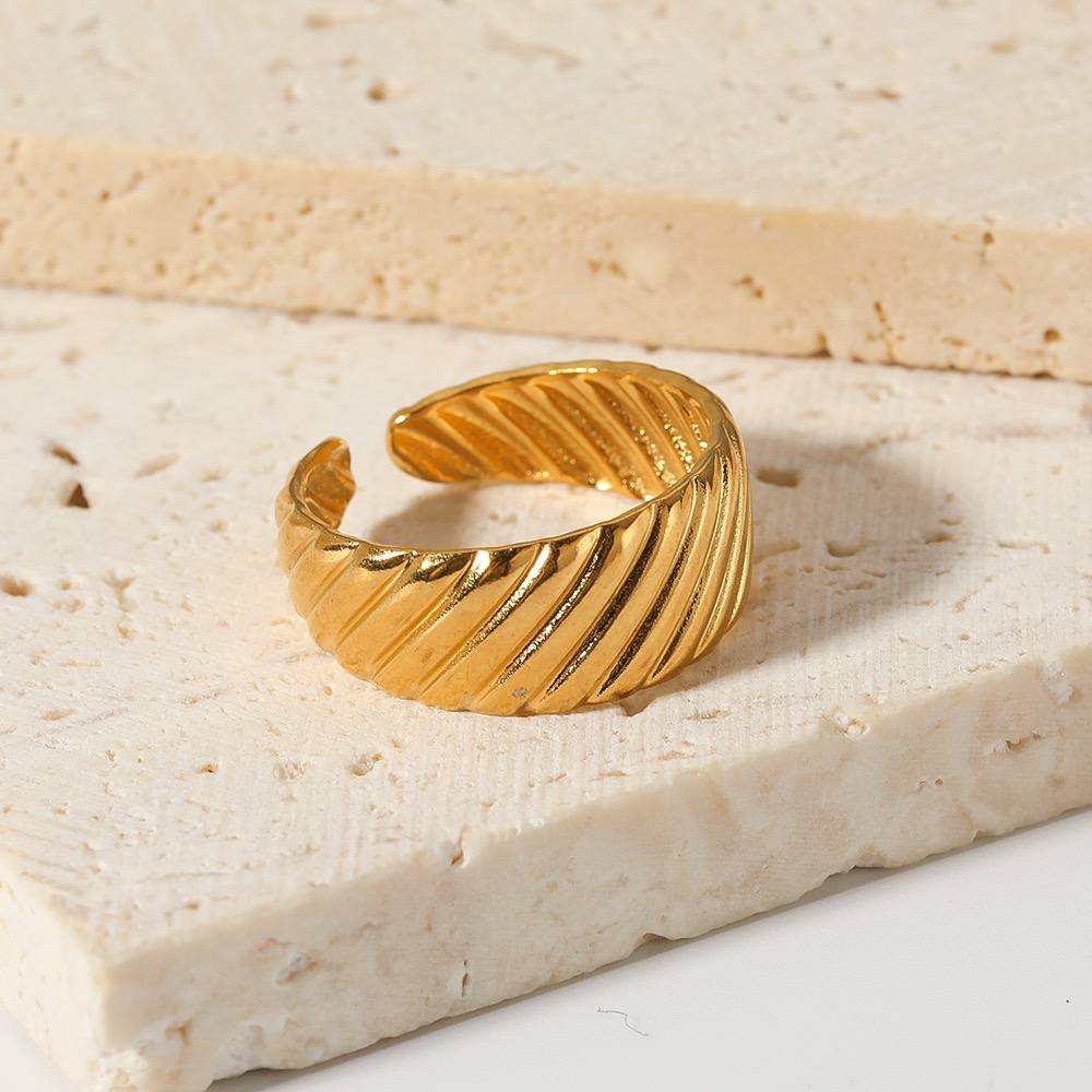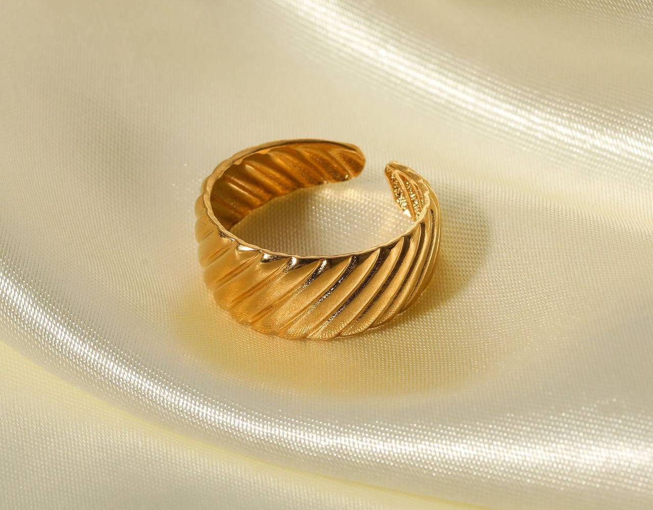 خاتم ستانلس ستيل مطلي بالذهب عيار 18، مقاوم للماء، مضاد للحساسية، مضاد للتشوه، مصنوع من الفولاذ المقاوم للصدأ