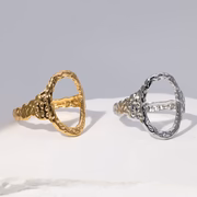 خاتم نسائي من الستانلس ستيل المقاوم للصدأ بتصميم هندسي بيضاوي الشكل مفتوح قابل للتعديل