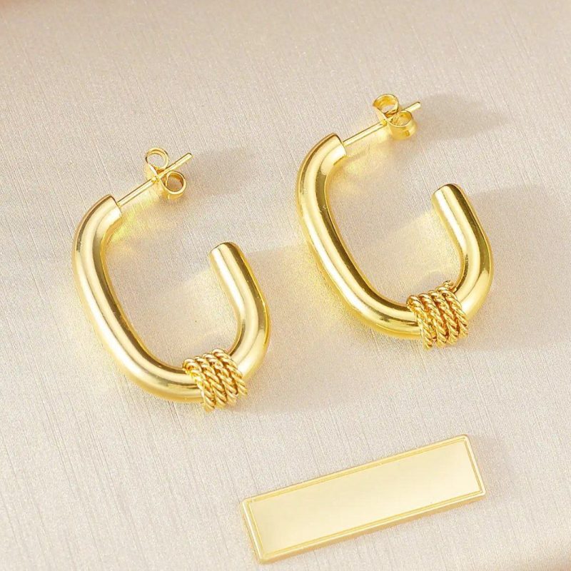 275 EGP138 EGPأقراط دائرية أنيقة على شكل مستطيل من الستانلس ستيل المقاوم للصدأ
